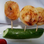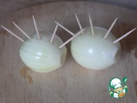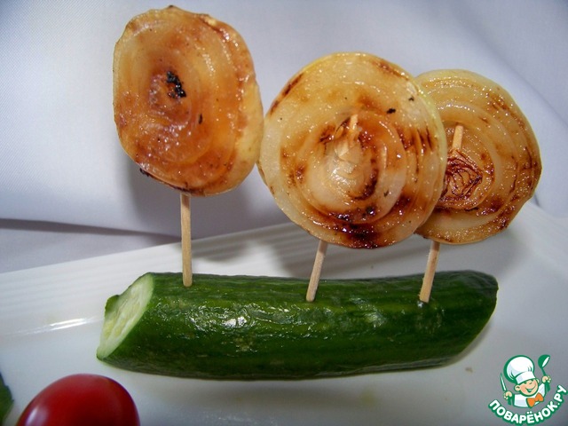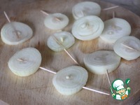 Нарезать лук кольцами между воткнутыми зубочистками. Получается "лук на палочке". |