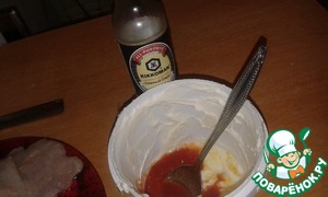 Для кляра смешать яйцо, сметану, томатный сок, паприку, добавить соевый соус