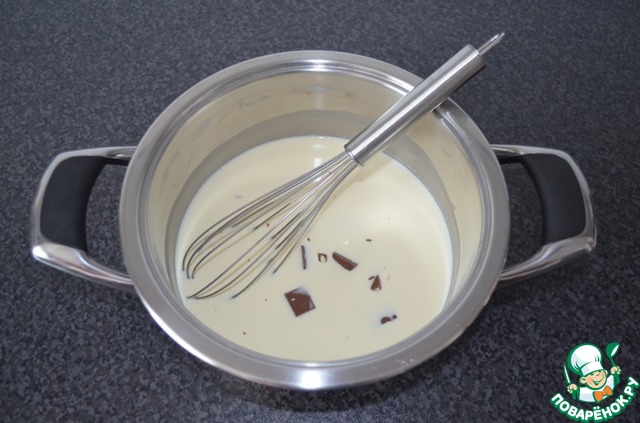 Если шоколад не растворился полностью (плохое качество шоколада), можно размельчить погружным блендером, но не долго, а то сливки начнут взбиваться.