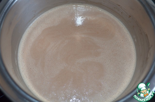 Когда шоколад полностью растворился, добавить водку и дать ещё ликеру хорошо прогреться, но не кипятить!!! -