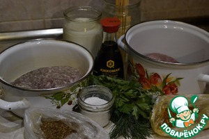 - Фарш мясной (говядина/свинина, заранее приготовленный, с луком) — 500 г