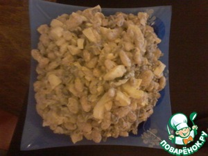Все ингредиенты охладить, смешать, посолить, заправить майонезом