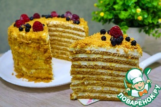Масло (50г), яйца (3 шт), соду (2 ч. л.), сахар (1 стак.) мед (3 ст. л.) перемешать, и варить на водяной бане 7 минут