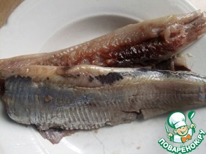 Замочить желатин в холодной кипяченой воде. Селедку разделать на филе, по возможности удалить все косточки.