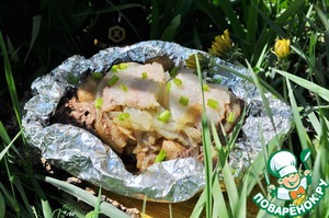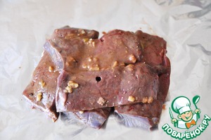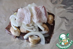 Рецепт «Печень с шампиньонами в фольге»: