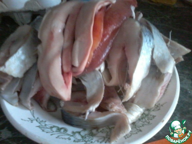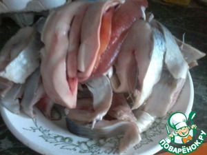 Селедку разморозить, выпотрошить, промыть, нарезать на кусочки. (икру и молоки можно тоже замариновать)