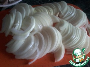 Слой лука, и так чередуем пока не закончиться рыбка и лук