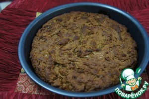 Разогреваем духовку до 150 градусов, смазываем форму подсолнечным маслом, выкладываем наше тесто для пирога.