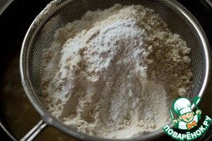 Теперь в сито положим муку, соду, разрыхрытель для теста и соль. Просеиваем муку прямо в миску с банановой смесью.