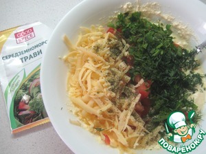 Я не солила, т. к. сыр у меня был достаточно соленым. Добавила чуточку средиземноморских трав. -