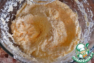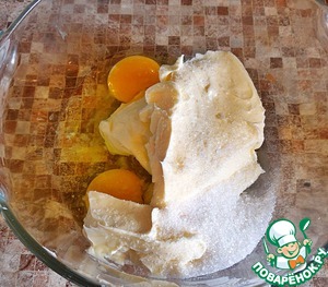 Сливочное масло должно быть комнатной температуры. Его нужно сложить в ёмкость, добавить 2 яйца, немного соли и половину ложки сахара.