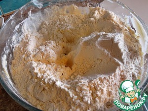 Всю муку сложить к масляно-яичной массе и быстро замесить тесто.