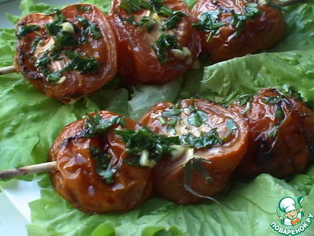 Рецепт «Шашлык из помидоров с базиликовой заправкой»: