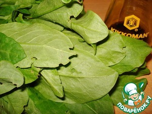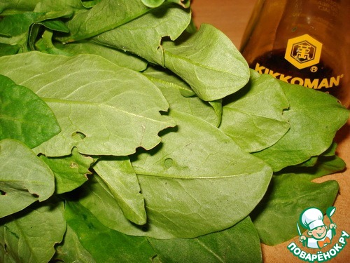 Положим в чашу блендера щавель, вольем оливковое мало и соевый соус.