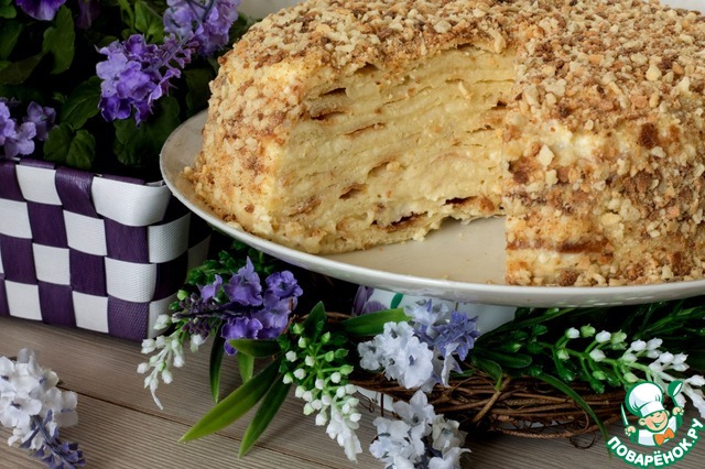 Пожалуй, это самый прекрасный "Наполеон" из всех, что я готовила. И самый высокий))) И, на мой взгляд, один из лучших тортов, который можно подать на праздничный стол. Узнаваемый вкус и форма традиционного "Наполеона" изумительно сочетается с необычным и новым для этого торта присутствием в креме сливочного сыра. В общем, если вы хотите поразить своих близких и гостей в самое сердце, обязательно попробуйте приготовить этот "Наполеон"!