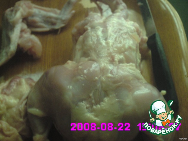 Надрезаем кожу вокруг ног и осторожно отделяем, стараясь не повредить кожу, где руками, где помогая ложкой.