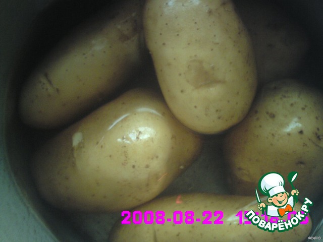 • Пред тем, как заняться курицей, моем картофель и ставим вариться до полуготовности.