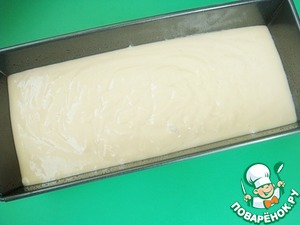 Выложить тесто в смазанную маслом прямоугольную форму для кексов, размером 25 Х 10 см.