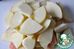 Берём кисло-сладкие яблоки, удаляем сердцевину и режем на тонкие кусочки - сегменты.