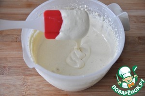 Должно получиться тесто по густоте не жидкой сметаны.
