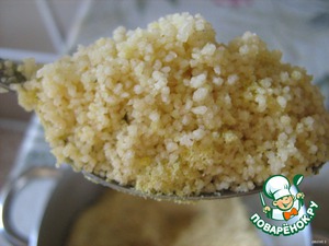 Пока котлеты тушатся - приготовим кускус. Есть множетво вариантов приготовления это очень вкусной крупы. Я предлагаю самый простой. Высыпаем в кастрюлю кускус, добавляем 2-3 ложки сухого бульона (количество зависит от степени солености бульона), и 2-3 ложки растительного масла.