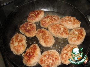 Из готового фарша формируем котлеты и обжариваем их, как обычно, на сковороде в масле.Каждая хозяйка делает их по-своему, а если кто не умеет - с легкостью найдет множество рецептов здесь на сайте. Этот соус подойдет не только для мясных котлет, но и для рыбных, или котлет с начинкой (зраз).