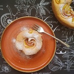 Обычная шарлотка в необычной подаче-выпечена порционно и дополнена розами из яблок.