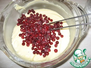 Всыпаем бруснику и перемешиваем. Немного брусники можно оставить на украшение кекса