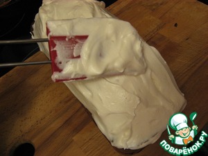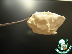 Миксером взбиваем белок очень хорошо, чтобы он стал густым и не выливался при переворачивании