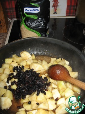 Теперь добавляем промытый изюм и корицу, готовим еще 5 минут, снимаем с огня