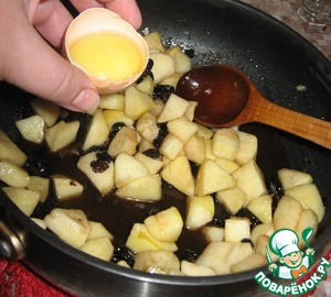 На этом этапе всыпаем яблоки и готовим их 5 минут
