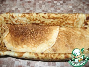 ... и свернутые пополам блинчики. Опять, начинку, и блинчики - и так до верха