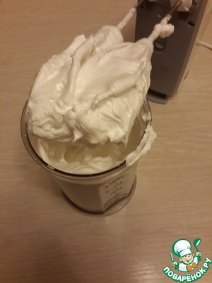Оставшийся белок взбиваем с 1/2 стакана сахара в безе