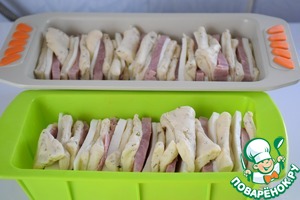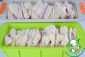 Выкладываем в смазанную маслом форму, сгибом вниз.