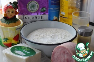 Если у Вас нет ХП: Просейте муку (примерно с полстакана оставьте для подмеса), добавьте соль, сахар, дрожжи, базилик. Перемешайте. Сделайте углубление и добавьте воду (комнатной температуры). Замесите тесто. Добавьте растительное масло и вмешивайте его в тесто. Если чувствуете, что тесто жидкое и липкое, то добавьте еще муки. Тесто должно быть не липкое и не крутое. -
