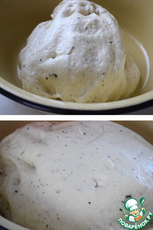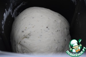 Выкладываем тесто в смазанную маслом чашку, накрываем пленкой и убираем в теплое место. Тесто должно увеличиться в объеме в 1,5 - 2 раза.