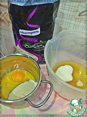 1 способ (используемый). Отделить яичные белки от желтков. Сахар поделить пополам и добавить каждую часть в белки и сахар. Белки с сахаром необходимо взбивать минимум 5-7 минут. Взбивать их нужно до образования крепкой пены, а что бы хорошо взбивались белки предварительно нужно охладить, так же можно добавить щепотку соли.