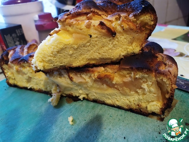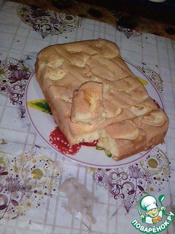 У меня пирог маленький, потому что я все выпекаю в пол порции, чтоб мое семейство успевало съедать всю мою выпечку