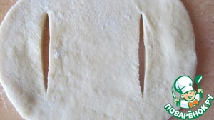 4. Тесто разделить на колобки, раскатать, сделать надрезы.