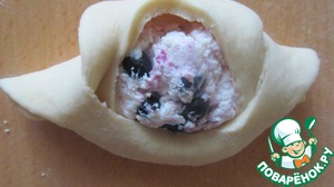 3. Для начинки протереть творог, добавить сахар, белок, ванилин и смородину.