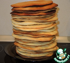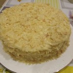 Количество ингредиентов указано на торт весом около 2х кг (это примерно 15 слоев теста, диаметр пышек 24см). Я в этот раз сделала два тортика поменьше диаметром.