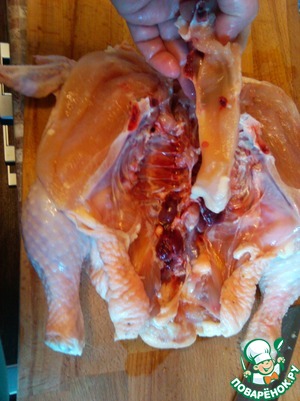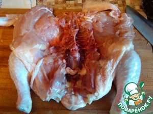 Цыпленка нужно разделать так, чтобы он стал плоским.