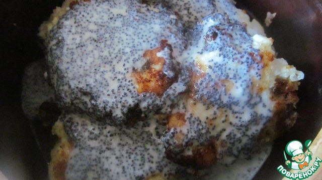 4. Обжарить сырники, залить заливкой, поставит на 10 минут в духовку.