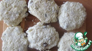 1. Творог хорошо размять или протереть через сито. Добавить сахар, яйцо, соль, изюм, 2 ст. л. муки. Замесить тесто.