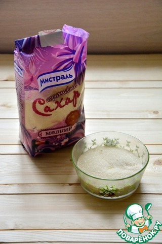 Я использую мелкий коричневый сахар от Мистраль