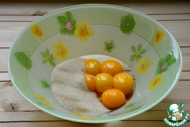 Желтки растереть с 60 г сахара