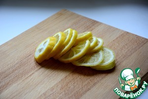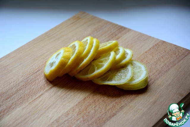 Лимон помыть и нарезать колечками, удалить семечки