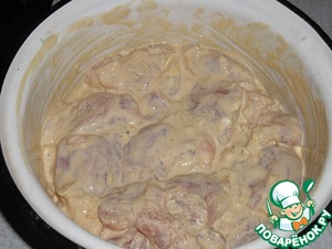 Хорошо перемешать с маринадом, накрыть крышкой или пищевой пленкой, убрать в холодильник минимум на 2-3 часа, можно на ночь. -
