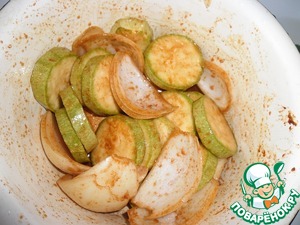 За 1-2 часа до жарки шашлыка маринуем овощи.