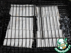 Выкладываем конвертики на решетку и жарим над горячими углями по несколько минут с каждой стороны до расплавления сыра.